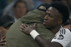 体育资讯04月08日讯 欧冠1/4决赛首回合比赛,拜仁客场2-1皇马。在下半场开始前,维尼修斯径直走向拜仁教练席,与孔帕尼击掌拥抱并短暂交流。
