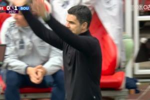 据记者Sam Dean现场报道,当阿森纳替补席后方的球迷抱怨球队无法更快地向前推进时,阿尔特塔转向他们,示意他们冷静下来。