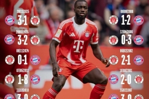 拜仁在最近10次同圣保利的交锋取得了9胜1负,共计狂轰29球,丢了7球。