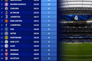 体育资讯4月14日讯 欧冠1/4决赛次回合即将打响,德转也盘点了自92/93赛季欧冠改制以来,进入4强次数榜以及各支球队上次进入4强的赛季,具体如下: