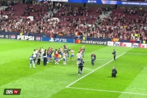 令人意外的是,在这场对阵巴萨的欧冠淘汰赛赛后,兴奋不已的马竞全队与全场球迷一同高声唱起了反皇马的歌曲。