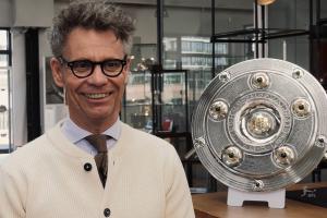 1949年,冠军奖盘取代了在二战中遗失的“维多利亚”雕像。这座奖杯由科隆工艺学校的艺术教授伊丽莎白·特雷斯科设计并制作。自1903年以来,所有德国冠军的名字都被镌刻在这座奖盘上,每赛季结束时,新的冠军名字都会被添加上去。