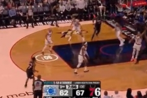 库里遭遇包夹倒地!美媒:他被干翻在地上 依然没有哨子啊