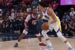 可惜!库里三分命中 但因桑托斯掩护犯规被吹无效