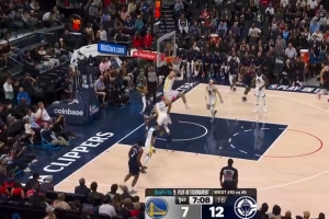 可惜!库里三分命中 但因桑托斯掩护犯规被吹无效