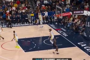 库里遭遇包夹倒地!美媒:他被干翻在地上 依然没有哨子啊