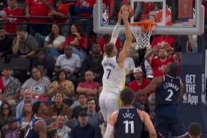 库里遭遇包夹倒地!美媒:他被干翻在地上 依然没有哨子啊