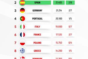 最新欧战积分排名,英超继续领跑。西甲仍第二,只领先德甲0.191分。