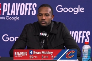 莫布里:嗯,不要过多介入媒体或我们在球队讨论范围之外的任何事情。我认为在季后赛中,你必须只专注于球队在谈论什么,教练在谈论什么,把一切都留在内部。现在不是被外界噪音分心的时候,我认为我们在这方面做得很好,我们必须在整个季后赛期间继续保持。