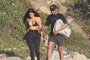 45岁的金·卡戴珊身穿紧身潜水服和黑色比基尼,41岁的汉密尔顿则身穿黑色短裤和配套T恤。两人形影不离,笑容满面,在沙滩上漫步时大秀恩爱,不时发出笑声。