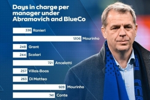 体育资讯4月23日讯 切尔西已经官宣解雇罗塞尼尔,战绩不佳是主要诱因。天空体育数据统计显示:切尔西在阿布时期主帅平均执教528.67天,BlueCo财团入主后的主帅则平均执教258.40天。