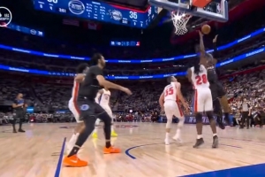 幸无大碍!哈里斯强攻被比塔泽犯规倒地 裁判回看后没有升级