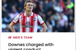 唐斯将缺席在温布利对阵曼城的足总杯半决赛,以及南安普顿本赛季英冠常规赛最后两场对阵伊普斯维奇和普雷斯顿的比赛。