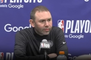 阿德尔曼:是的,我绝对是认真的,我认为要让这些家伙发挥作用,他们必须掩护得更好。你知道,如果你能让队内最好的球员获得空位,就会迫使对手轮转防守,就会迫使底线防守人补防。这就能创造出通过球的转移带来的三分球机会等等。所以,是的,我知道他们很沮丧。今天所有人都很沮丧。显然我们队里最出色的两名球员在投篮上非常挣扎。所以我们会回去看录像,我们会做得更好。如果我必须简化战术来让这些家伙打得更轻松,我们可以这么做。有时面对防守压力你就得这么做。就像我说的,去年季后赛也是同样的情况。有时候你必须把事情简单化才能打得更好,因为这能让你们更有条理,打出简单的配合,互相创造空位,让比赛变得更容易。所以我们会去梳理,会去讨论,我们在赛后也谈过了,但这需要在看录像时去具体解决。