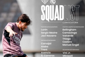 体育资讯4月24日讯 北京时间明天凌晨,皇马将在西甲第32轮比赛中客场对阵贝蒂斯,皇马公布了此役的球员名单。米利唐、琼阿梅尼、居莱尔、塞巴略斯缺席,阿森西奥回归。