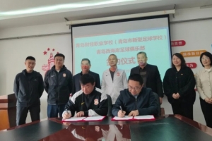 4月23日,青岛西海岸足球俱乐部与青岛财经职业学校(青岛市新型足球学校)签约仪式在该校举行,校党总支书记兰明传、副校长刘杰等学校领导,刘家下河社区书记傅大雨,青岛西海岸足球俱乐部总经理申军共同出席仪式,见证这一体教融合、共育人才的重要时刻。