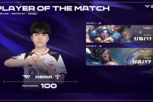 体育资讯4月25日讯 在刚刚结束的LCK常规赛的比赛中,Keria两局合砍2/7/28的战绩,拿下T1对阵BRO系列赛MVP!