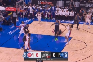 关键时刻绝不手软!CC挡拆推射三分命中追平魔术 激情撞飞主教练