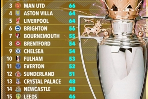 Opta超级计算机预测英超最终排名