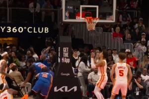 GIF-布伦森被奥孔武倒地时撞到腿