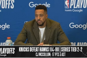 体育资讯4月26日讯 NBA季后赛东部首轮G4,老鹰98-114不敌尼克斯,大比分2-2平。赛后麦科勒姆接受了采访,以下为采访全文。