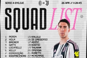 体育资讯4月26日讯 北京时间明天凌晨,尤文将在意甲第34轮比赛中客场对阵米兰,尤文公布了此役的球员名单。佩林、弗拉霍维奇、阿季奇回归。