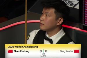 体育资讯04月26日讯 斯诺克世锦赛16进8第三阶段,赵心童和丁俊晖首局上来就鏖战47分钟。