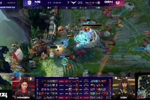 体育资讯4月26日讯 在今日的LCK常规赛上NS首局不敌Gen.G,本局比赛中Kingen杰斯毫无作用,屡屡阵亡战绩0-6-0!