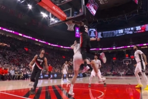 脚都没离地!文班亚马篮下双手举高直接站帽罗威