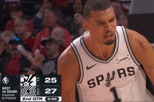 文班生涯首个季后赛客场拿下至少25分5盖帽 NBA历史首人!