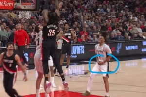 脚都没离地!文班亚马篮下双手举高直接站帽罗威