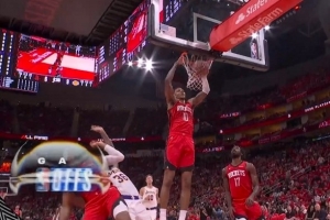 反超了!申京假传真上越过八村塁直接单臂劈扣得分