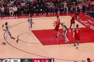 反超了!申京假传真上越过八村塁直接单臂劈扣得分