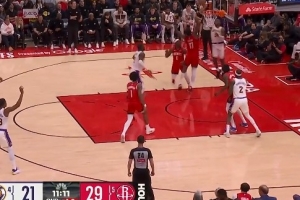 反超了!申京假传真上越过八村塁直接单臂劈扣得分