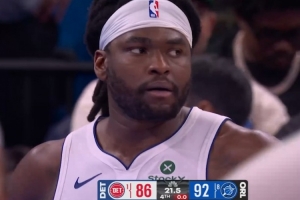 解说:角色球员站出来分担了约穆的压力 让森林狼的防守顾此失彼