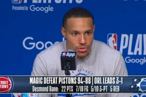体育资讯4月28日讯 NBA季后赛首轮,魔术94-88活塞,大比分3-1领先,赛后德斯蒙德·贝恩接受了媒体采访,以下为采访全文。