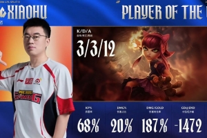 体育资讯4月28日讯 WBG今日爆冷横扫TES,Xiaohu两场出色表现斩获大场POM,特别是第二局安妮最后的关键开TES两人,为WBG奠定胜势。此役Xiaohu整体参团率62%,场均伤害转化率来到171%