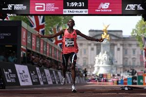基普乔格当年穿着碳板跑鞋,在维也纳参加英力士老板策划的1:59挑战赛”,跑出了1小时59分40秒的成绩,不过谁都不认那成绩。组织那活动的英力士老板拉特克里夫,也已经转向去曼联承受另一种体育折磨了。萨维在伦敦的突破、他身后相差11秒的科杰查、让人类再一次突破着体育的极限。第三名乌干达选手基普里莫,也跑出了2小时00分35秒的成绩,同样刷新了此前的世界纪录。