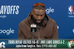 体育资讯4月29日讯 NBA季后赛,凯尔特人97-113不敌76人,总比分3-2领先。布朗赛后接受了媒体采访,以下为采访全文。