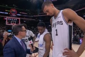 体育资讯4月29日讯 首轮系列赛,马刺114-95轻取开拓者,大比分4-1绅士横扫。文班亚马和福克斯赛后在场边接受了媒体采访,以下为采访全文。