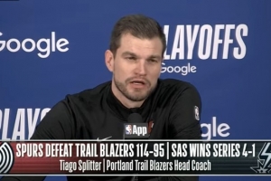 体育资讯4月29日讯 NBA季后赛首轮G5,开拓者95-114不敌马刺,系列赛1-4被淘汰。斯普利特赛后接受了媒体采访,以下为采访全文。