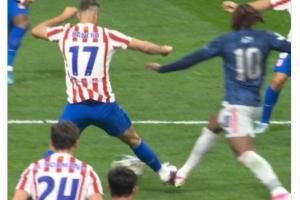 裁判回看埃泽点球VAR时,西蒙尼离开教练区抗议判罚