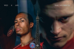 利物浦对阵巴黎次回合海报:范戴克、萨拉赫、埃基蒂克出镜